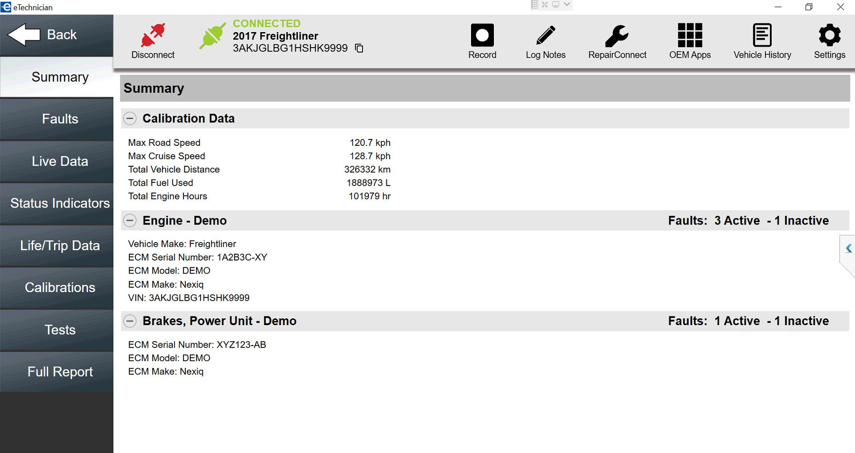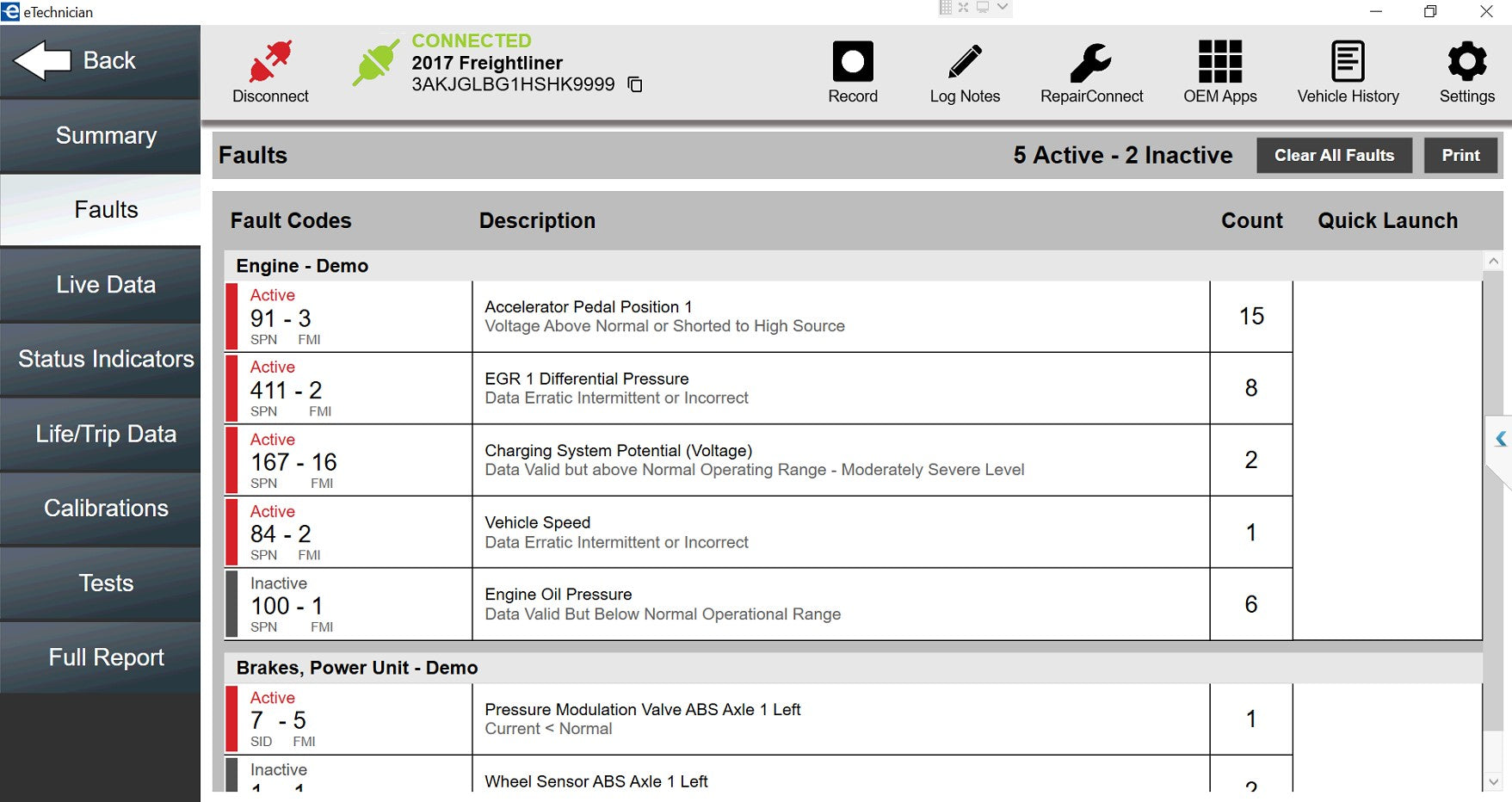 eTechnician gives you the data and support you need to stay competitive in today's trucking industry. Heavy duty diagnostics on your PC have never been so good, until now. We've combined extensive coverage for everything from commercial vehicles to light and medium-duty trucks. That gives you diagnostic capabilities for engines, transmission, brakes, body and chassis, and more.